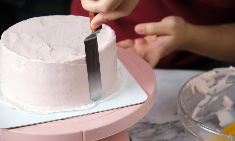 Ruch powinien być zdecydowany, od jednej krawędzi do drugiej, bez zatrzymywania w połowie. Po każdym pociągnięciu szpachlę warto oczyścić z kremu. Proces powtarza się kilkukrotnie, aż powierzchnia stanie się lustrzana. Obracanie tortu na stojaku ułatwia pracę – jedna ręka prowadzi szpachlę, druga obraca podstawę.